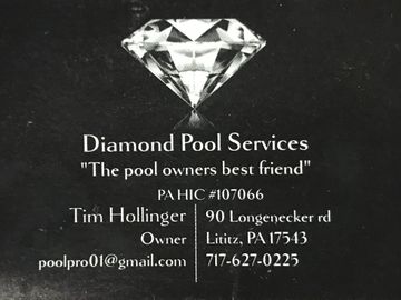 Need you pool serviced? Tim from Diamond Pools is your guy. If you need your pool opened, closed, serviced, or even remodeled, Diamond Pools handles all your pool needs. Over 20 years experienced with inground pools. Ph: (717) 627-0225